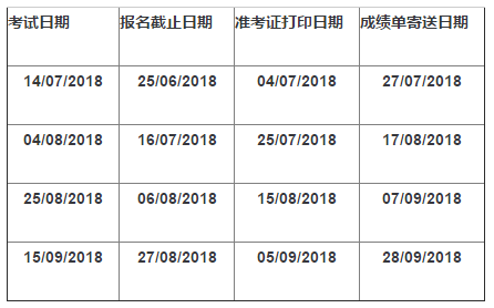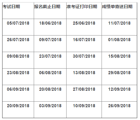 2018年7月至9月用于英國簽證及移民的雅思考試報名截止日期、準考證打印日期和成績(jì)單寄送日期