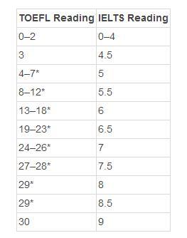 托福閱讀和雅思閱讀分數對照表