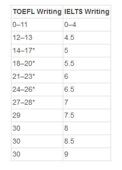 托福寫(xiě)作和雅思寫(xiě)作分數對照表